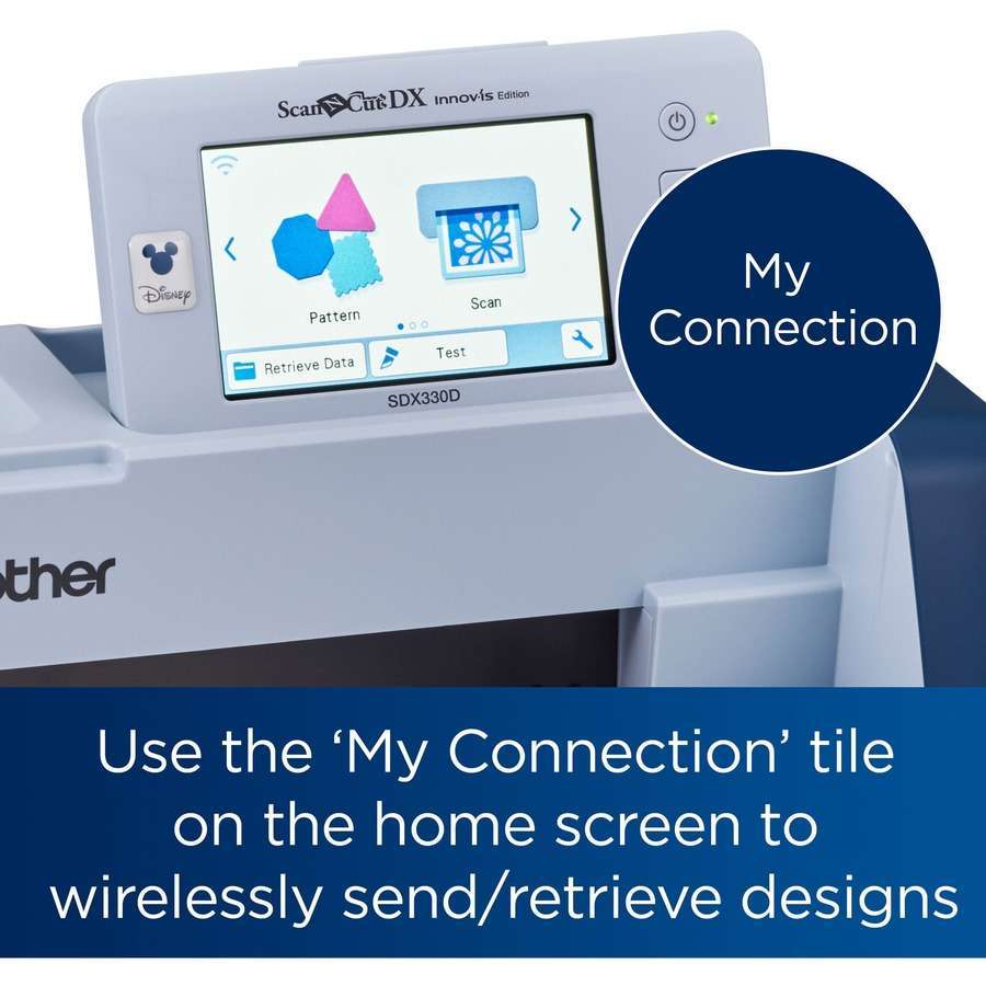 The ‘My Connection’ feature allows for wireless design transfers between the ScanNCut DX and compatible Brother sewing machines, enhancing your workflow efficiency.