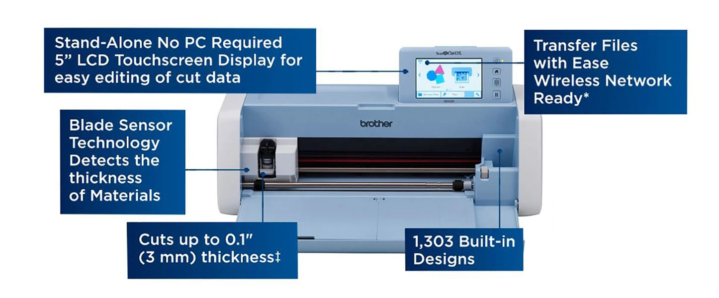 - WLAN Functionality – Transfer designs wirelessly between the ScanNCut DX and compatible Brother sewing machines using the ‘My Connection’ feature.