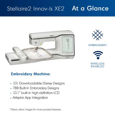 When in sewing mode, the XE2 performs well on everyday and decorative tasks. Auto threading, a drop-feed function, a start/stop button, and adjustable speed control support confident sewing at any pace. The extra high presser foot lifter and automatic presser foot sensor help with thick fabrics or creative layering.