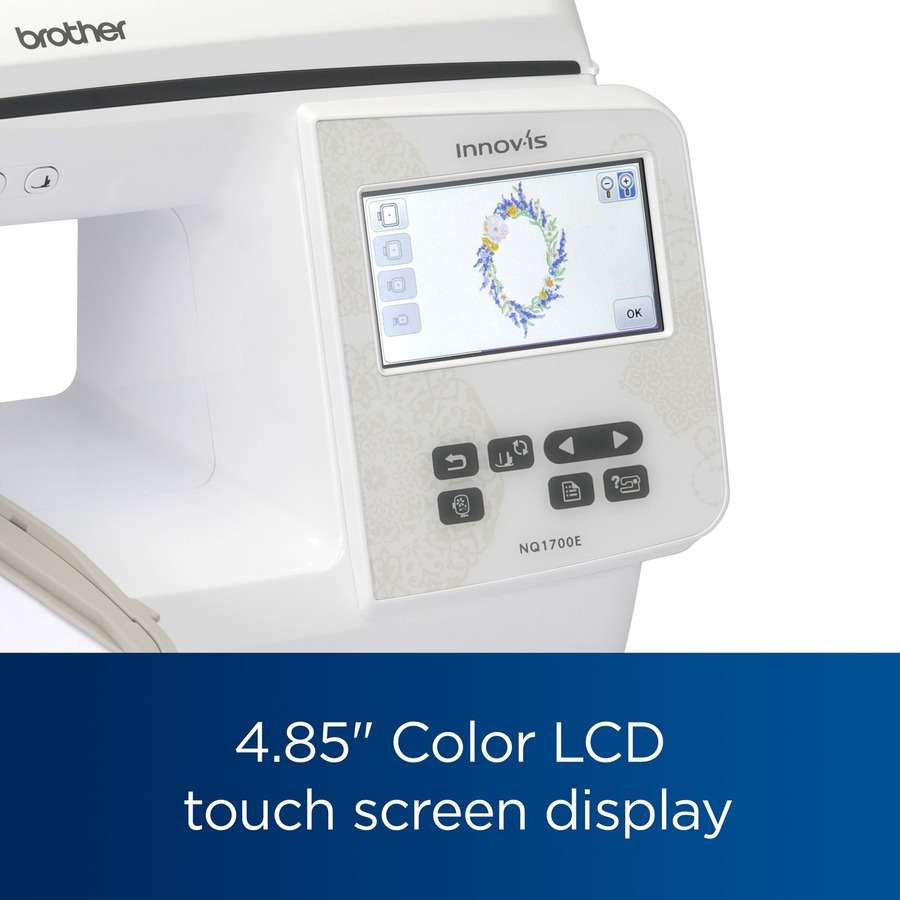 The perfect machine to launch your embroidery journey, the Innov-รญs NQ1700E has a host of premium features to get you started. With the NQ1700E, you can embellish and personalize all of your DIY projects with 258 built-in embroidery designs, 140 frame pattern combinations, and 13 embroidery lettering fonts, plus a large 6″ x 10″ embroidery area so you can tackle those big projects. Edit your creations right at your fingertips on the generous 4.85″ color LCD touch screen display and when connected to a wireless network, send designs to your machine using Design Database Transfer (no USB needed).