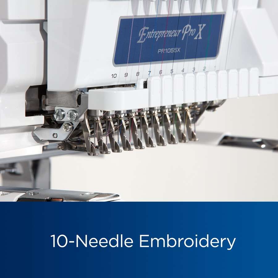 - Enhanced Productivity: With 10 needles, the PR1055X allows for seamless multi-color embroidery without the need for frequent thread changes, significantly increasing productivity.