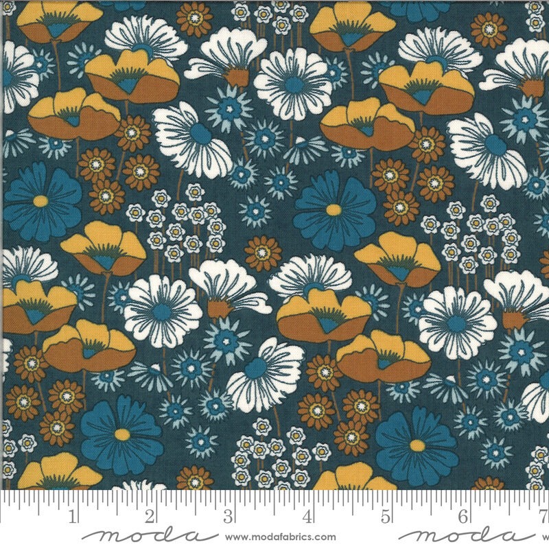 Moda Cider Blueberry Buckle fabricโvibrant floral design perfect for quilting and crafts. High-quality cotton ensures durability and comfort in every project. Ideal for creative expression.