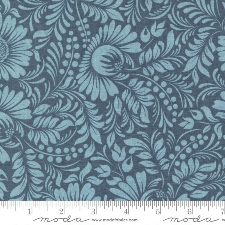 Moda Nutmeg Evening Quilting Cottonโluxurious 100% cotton fabric, 44/45 wide with elegant blue floral design. Perfect for creating stunning quilts and crafts.