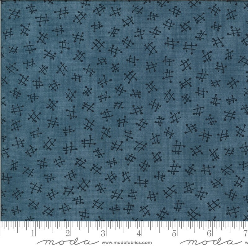 Moda The Blues Crochet Fitsgerald fabricโ100% quilting cotton, 44/45 wide. Perfect for crafting cozy quilts with a stylish blue pattern. Ideal for DIY enthusiasts seeking quality material.