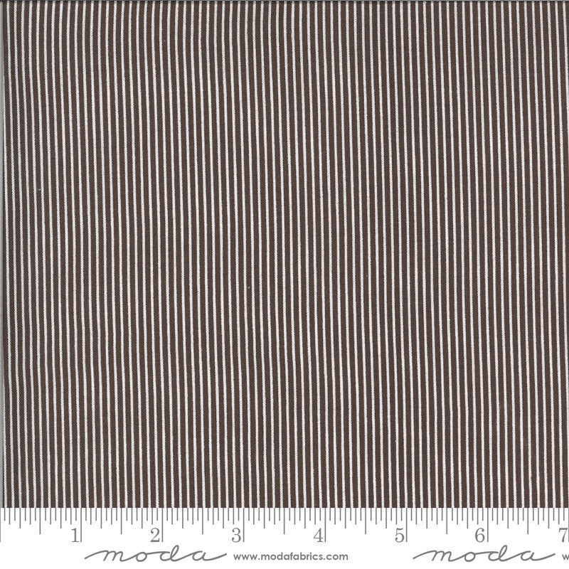 Moda Folktale Skinny Stripes Coco quilting fabricโ100% cotton, 42/44 wide. Ideal for creating timeless quilts or crafts with a chic brown and white stripe design. Perfect for sewing enthusiasts!