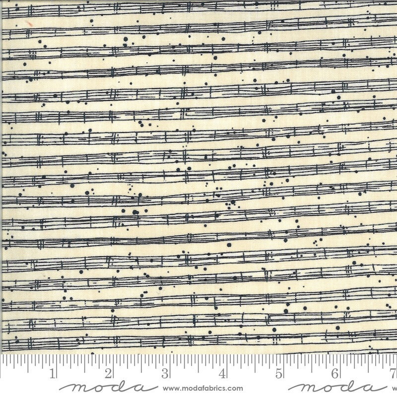 Moda The Blues Stave Billie Duke fabricโpremium cotton with a musical note design. Ideal for quilters and crafters seeking a unique, artistic touch for their projects.