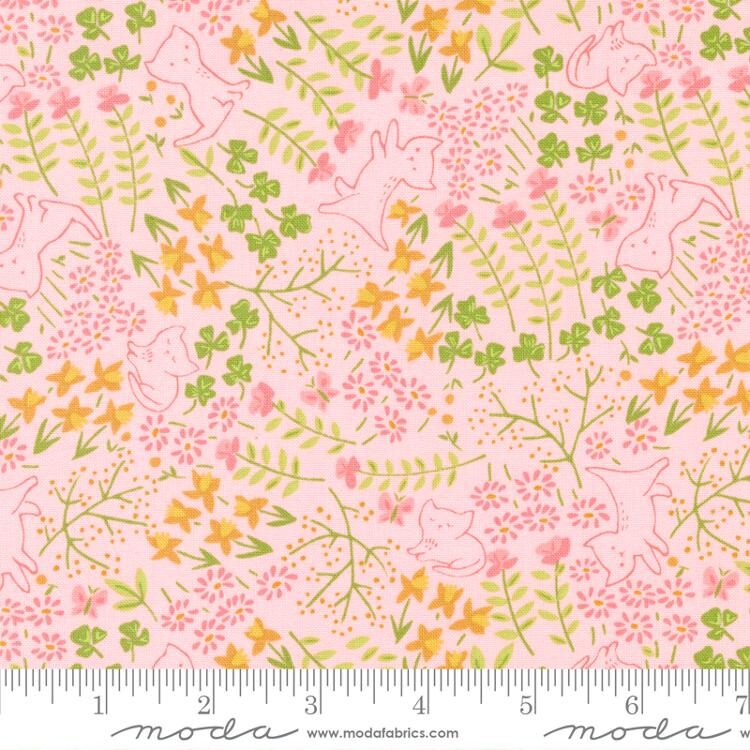 Moda Here Kitty Kitty Pink fabricโcharming pink backdrop with playful kitty motifs. Ideal for quilting, crafts, and dรฉcor projects. Add a whimsical touch to your creations!