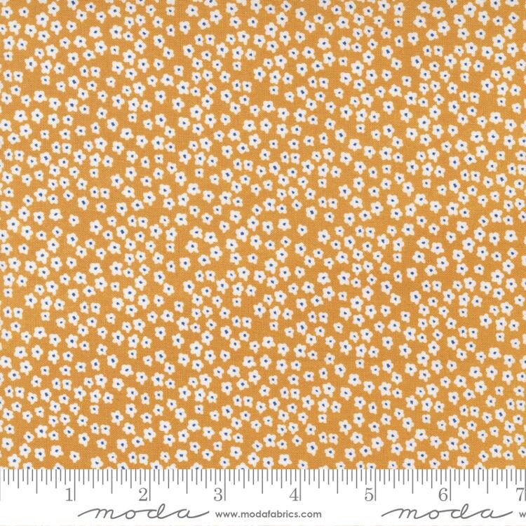 Brighten your projects with Moda Graze Blooms Sunshine fabric. This vibrant cotton fabric features a charming floral pattern, ideal for quilting or crafting. Add a touch of sunshine to your creations!