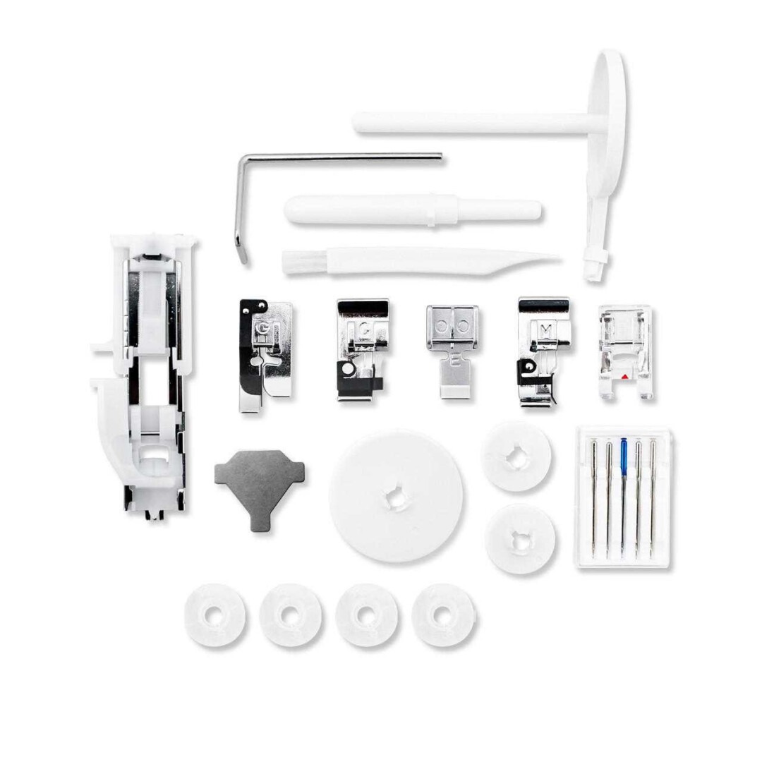 - Additional Accessories: Quilting Guide Bar, Spool Holders, Extra Spool Pin, Bobbins, Needle Set, Seam Ripper, Lint Brush, Screwdriver.