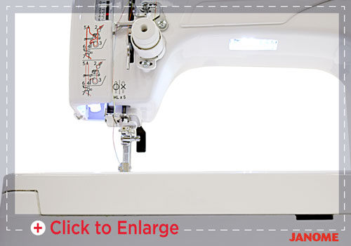 Spend less time rethreading with the jumbo bobbin system, which holds 1.4 times more thread than standard bobbins and is easy to access for quick changes.
